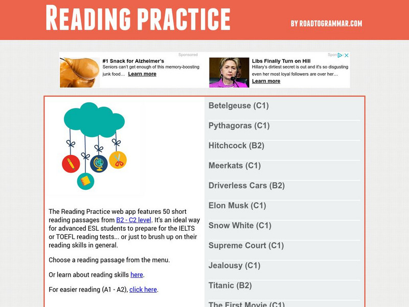 On this website you will find 40 reading for elementary students and 40 reading for middle school students. At the end each reading has questions to test the reading comprehension.