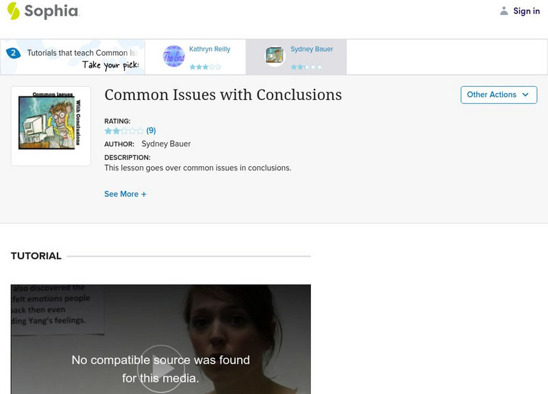 This video lesson focuses on common issues with conclusions such as simply restating the thesis and summarizing the research. Starting with a simple conclusion, she shows its issues and discusses how to make it show the impact of what...