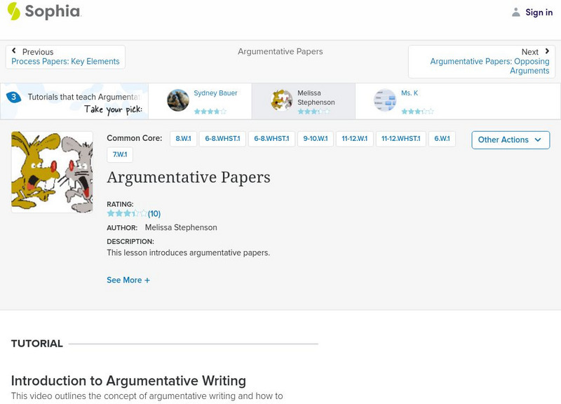 This video lesson explains the purpose of argumentative papers and the construction of paper as follows: thesis states claim, evidence supports claim, identify counterargument, evidence refutes counterargument, and conclusion restates...