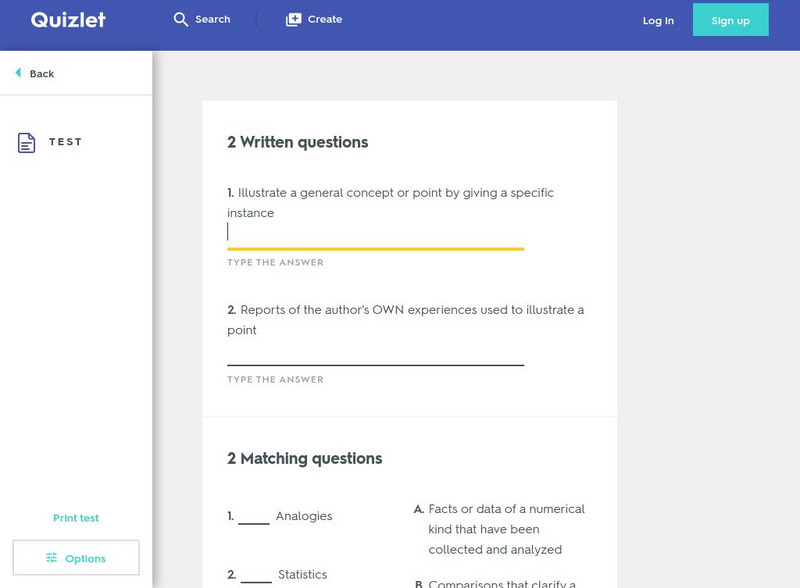 Match each type of supporting detail to its definition as you race against the clock in this matching game.