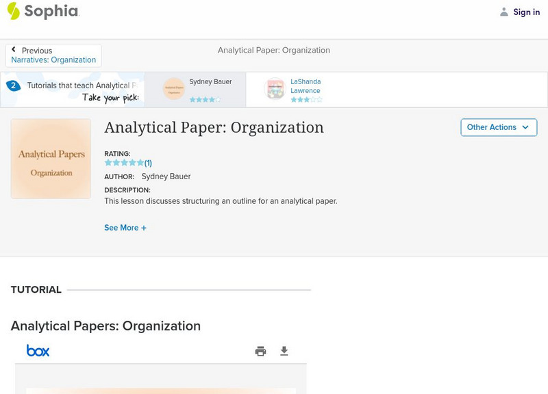 This lesson discusses structuring an outline for an analytical paper.