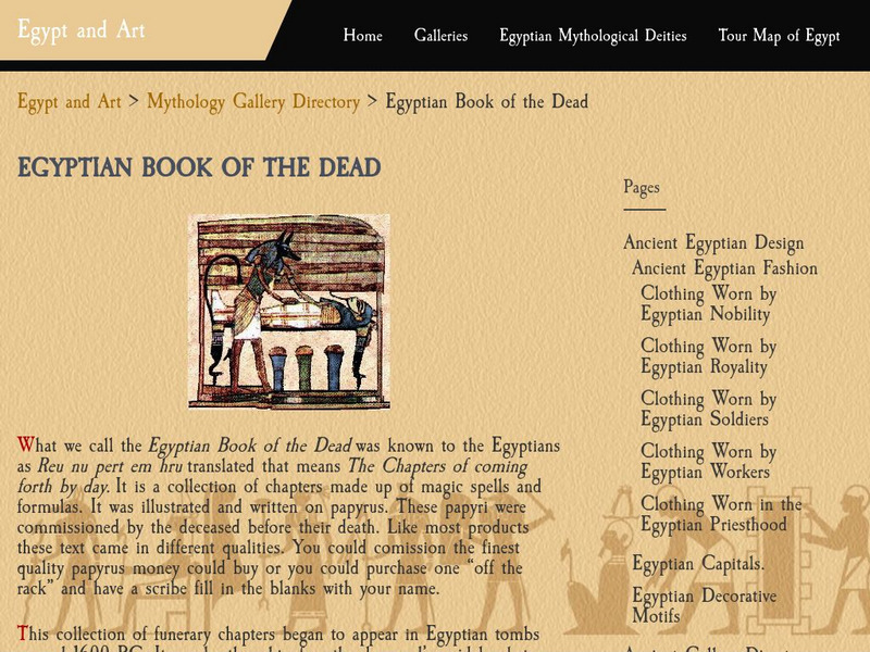 This is an interesting site from artist Richard Deurer that breaks down the Egyptian Book of the Dead into understandable sections. Everything is cross-referenced, and the resource even contains the complete translated text. RL.9-10.6...