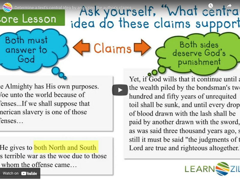 Learn Zillion: Determine a Text's Central Idea by Analyzing the Author's Claims