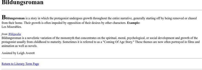 This is a glossary entry for the term "Bildungsroman" referring to characteristics of a "Coming Of Age" type story. A link to more information is provided.