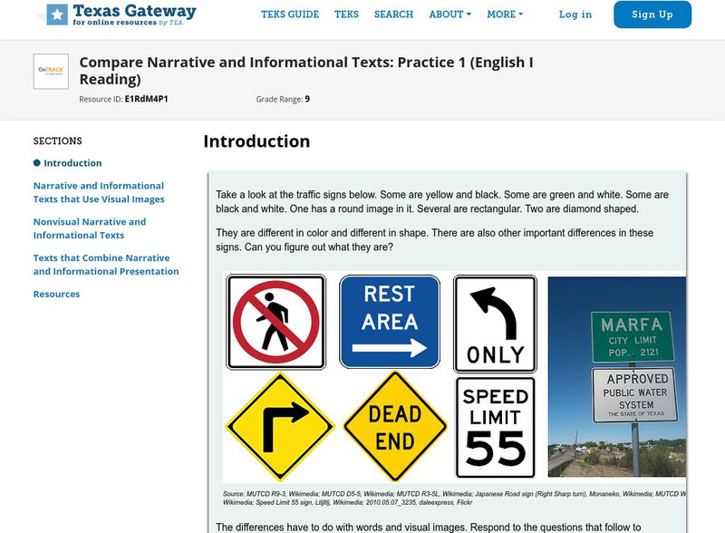 Texas Gateway: Compare Narrative and Informational Texts: Practice 1