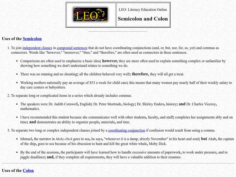 This writing lab site shows students how to correctly use semicolons and colons in punctuation.