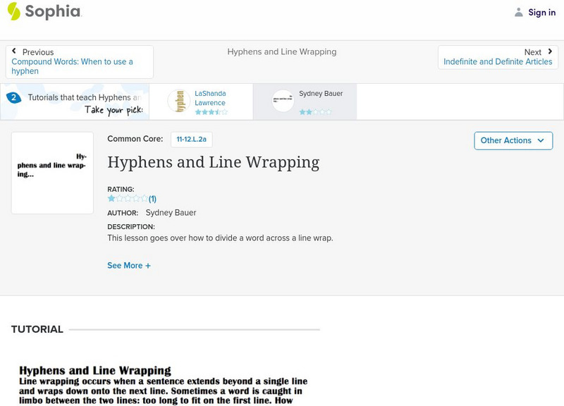 Sophia: Hyphens and Line Wrapping: Lesson 1