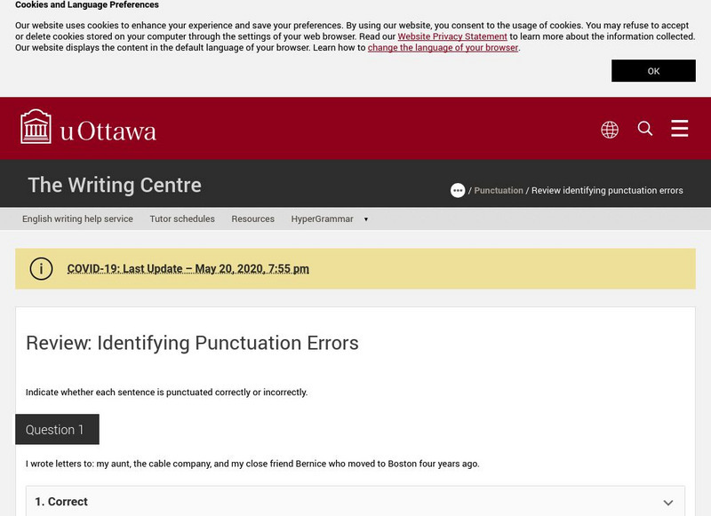 Univ. Of Ottawa Hyper Grammar: Punctuation Errors