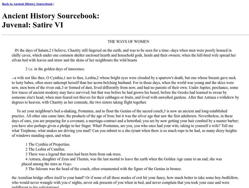 Fordham University: Ancient History Sourcebook: Juvenal: Satire Vi