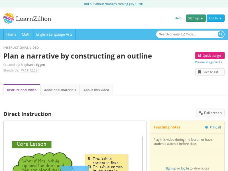 Learn Zillion: Plan a Narrative by Constructing an Outline