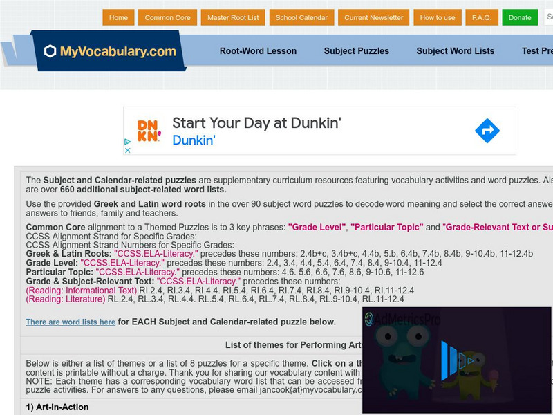 My vocabulary.com: List of Themes for Performing Arts & Fine Arts