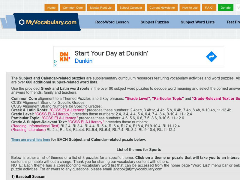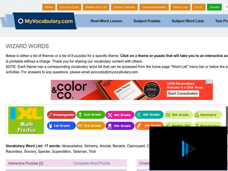 This page offers a variety of vocabulary puzzles and activities using vocabulary words pertaining to Wizards. It also provides an extensive word list for wizards and lesson plan ideas.