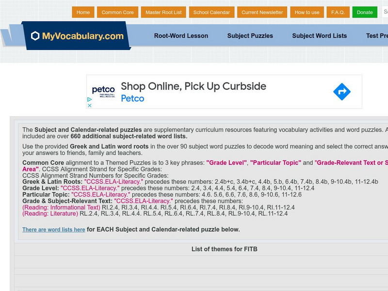 My vocabulary.com: List of Themes for Fill in the Blanks