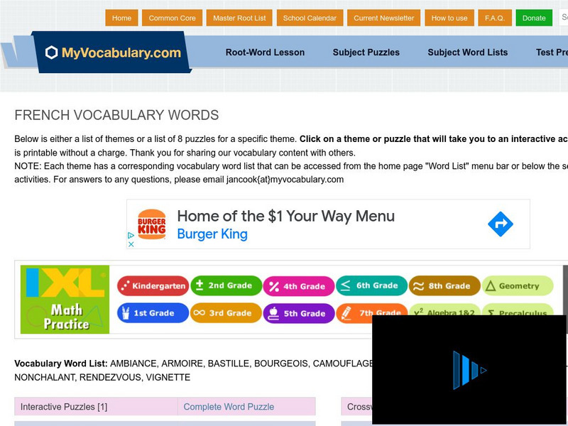 This is a variety of vocabulary puzzles and activities using 12 French vocabulary words. It also offers an extensive Vocabulary Word List for French vocabulary words (200).