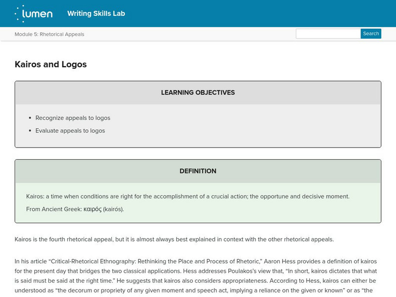 Lumen: Rhetorical Appeals: Kairos and Logos
