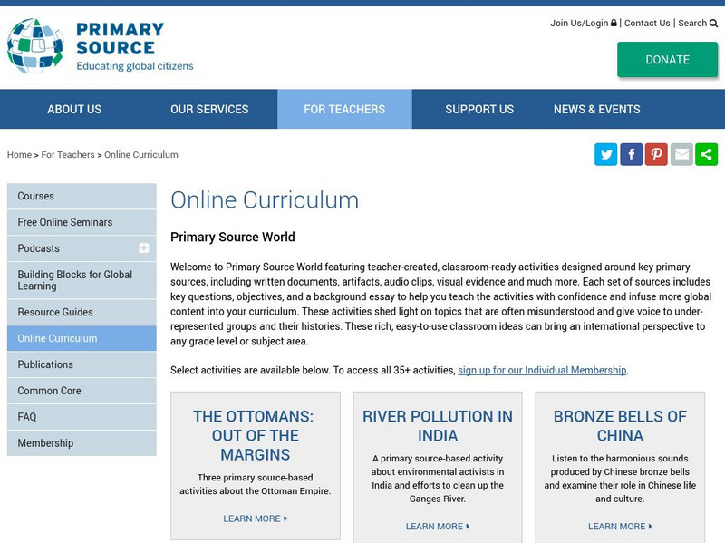 A collection of three teacher-developed curricular units that use primary resources. Topics include the Ottomans, river pollution in India, and Chinese bronze bells. Additional units are available for a reasonably priced membership.