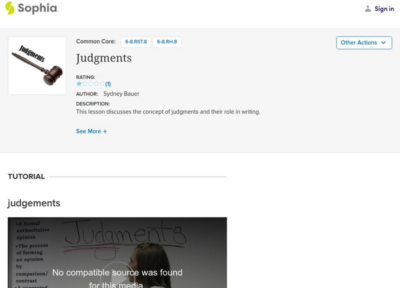 This video lesson focuses on judgements by first defining it as arriving at an opinion or evaluation about something. Then it looks at the difference between evaluation and judgement, and the place of judgement in writing. Real Player is...
