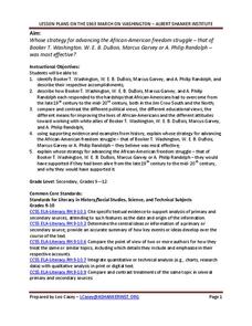 Booker T. Washington, W.E.B. DuBois, Marcus Garvey, and A. Philip Randolph developed different views on how to advance civil rights for African Americans. Class members research these famous figures and their strategies before developing...