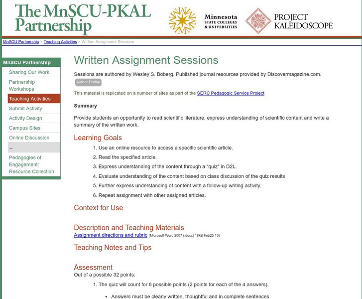 Serc: Written Assignment Sessions