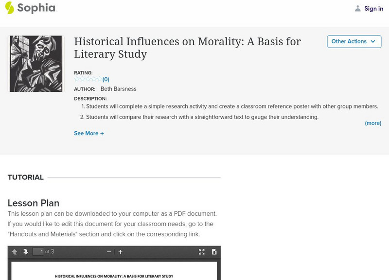 Sophia: Historical Influences on Morality: A Basis for Literary Study