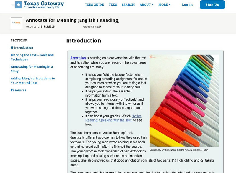 Texas Gateway: Annotate for Meaning (English Ii Reading)