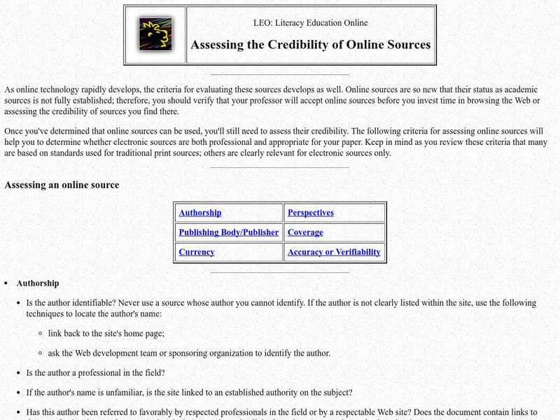 Literacy Education Online: Assessing the Credibility of Online Sources