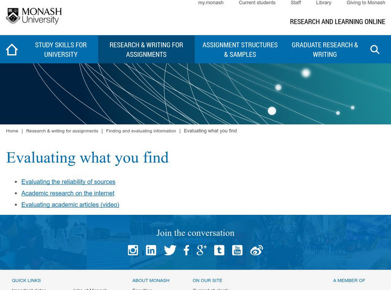 Monash University Library: Evaluating What You Find