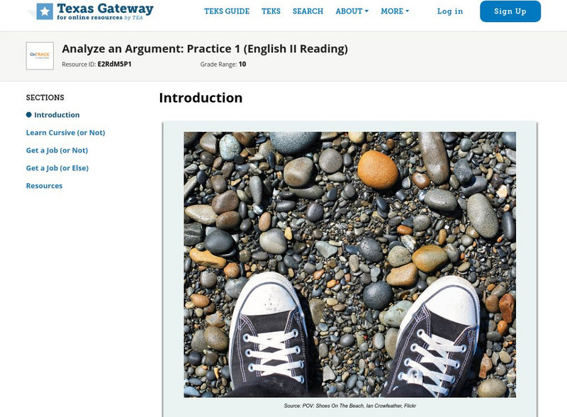 Texas Gateway: Analyze an Argument: Practice 1 (English Ii Reading)