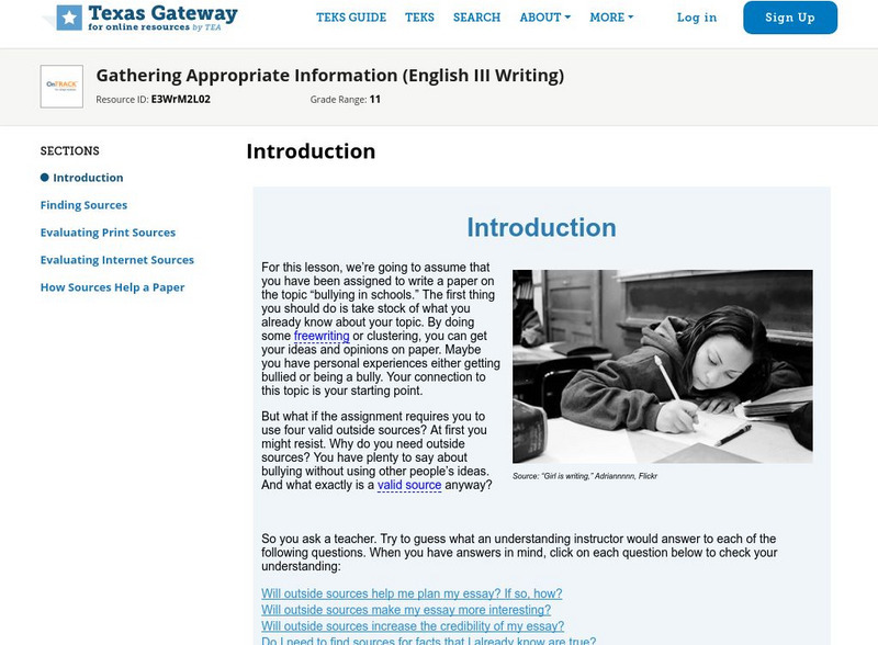Texas Gateway: Gathering Appropriate Information (English Iii Writing)