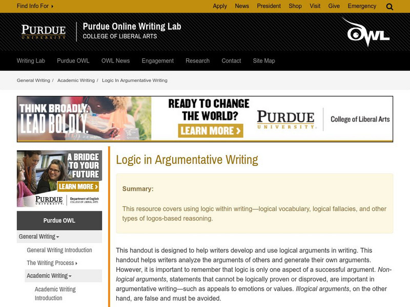 Purdue University Owl: Logic in Argumentative Writing