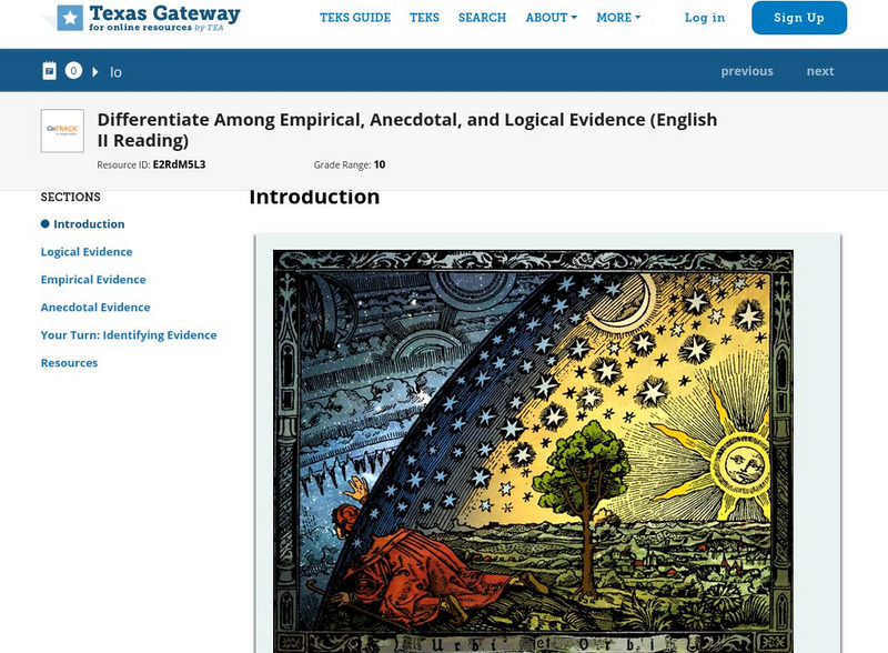 Texas Gateway: Differentiate Among Empirical, Anecdotal, and Logical Evidence