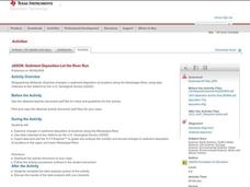 Pupils examine deposits found in a river in this science lesson. They collect data of sediment deposit found in the Mississippi river, then graph and analyze their data using the TI.