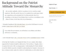 Learners explain the Patriot attitude toward the British monarchy, which helps them embrace the Founders' reluctance to have a strong executive under the Articles of Confederation as well as their desire to build in checks of executive...