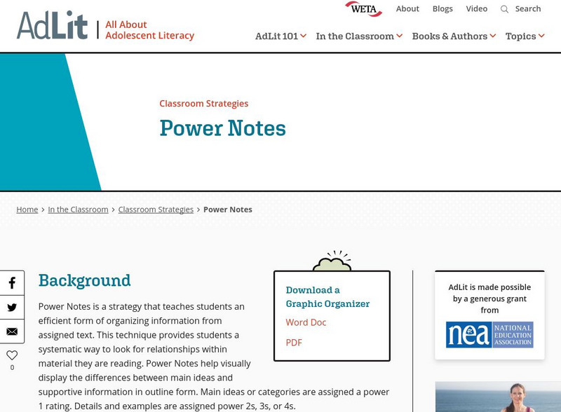 Power Notes is a strategy that teaches students an efficient form of organizing information from assigned text. This technique provides students a systematic way to look for relationships within material they are reading. Power Notes...