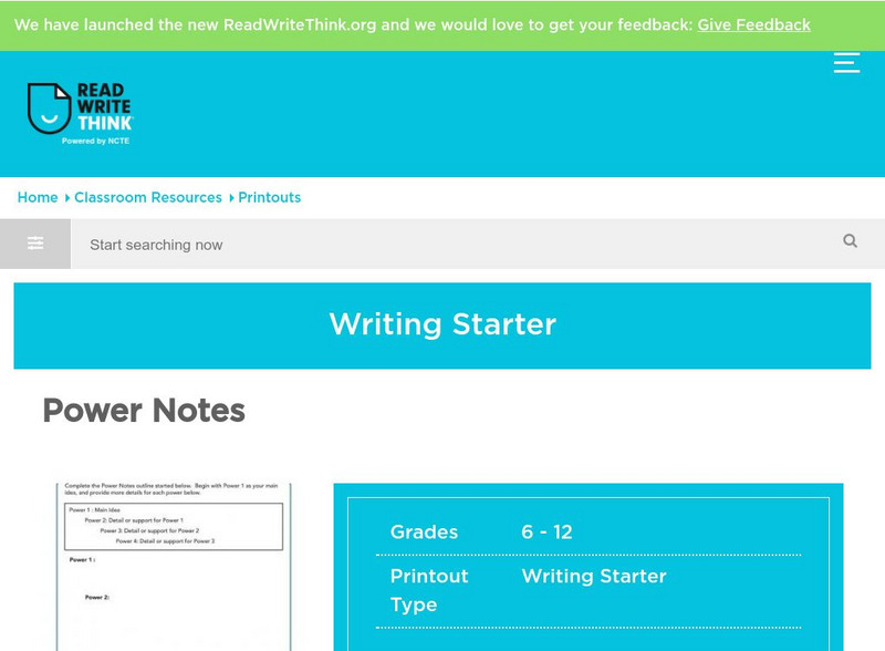 A printable note-taking format where students create an outline by assigning powers to the main idea and supporting details. Directions on how to use this type of rubric as well as lists of teaching ideas and related resources are also...