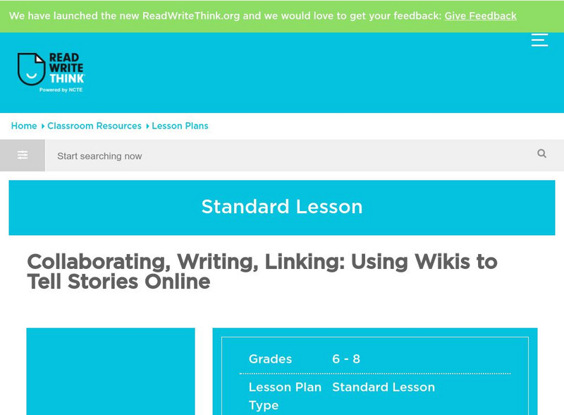 Read Write Think: Collaborating, Writing, Linking: Use Wiki to Tell Stories Online