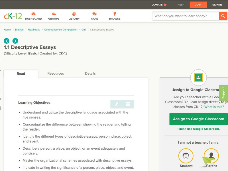 [Free Registration/Login may be required to access all resource tools.] Learn everything you need to know about writing a descriptive essay including: using language that appeals to the five senses; understanding the difference between...