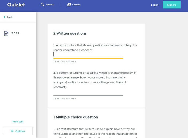 Quizlet: 6th Grade Text Structure: Test