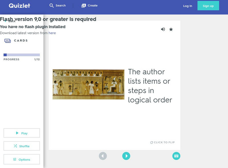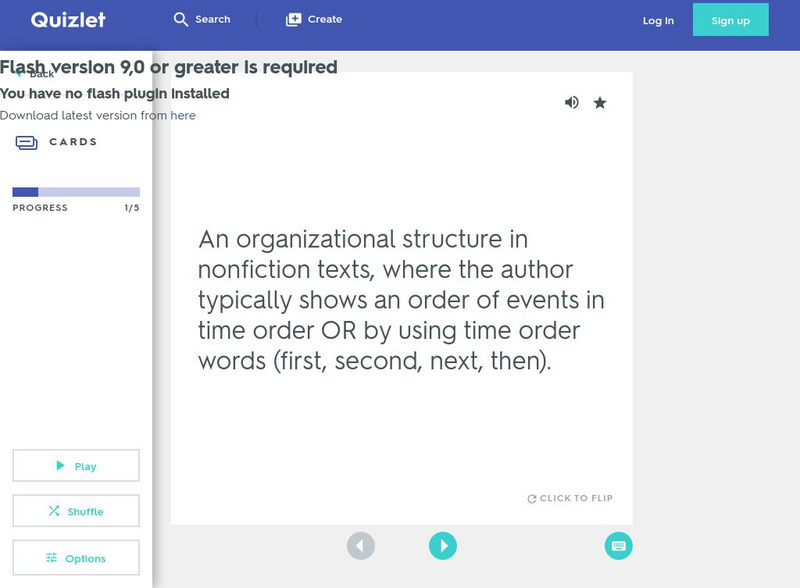 This interactive set of flashcards helps students to learn the terms and definitions of the types of text structure