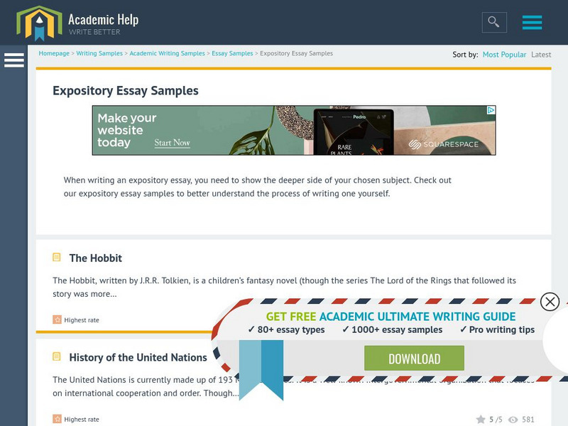 Links to several examples of expository essays in order to better understand the process and end result of a well written expository essay.