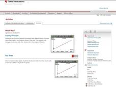 Learners study weather using a graphing calculator in this instructional activity. They collect data for temperature and relative humidity for every hour over a day from the newspaper, then place the data in their handheld calculator and...