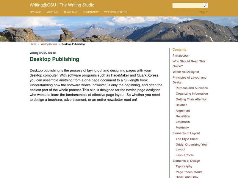 This resource provides information about the process of desktop publishing, including the principles of layout and design.