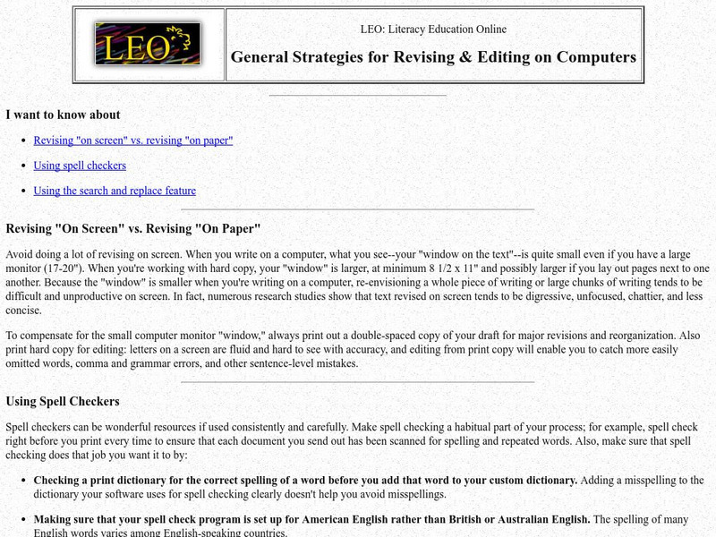 Literacy Education Online: Strategies for Revising and Editing on Computers