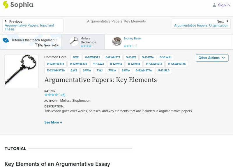 This lesson focuses on the key elements of argumentative writing. It lists and defines the key terms: claim, opposing argument, evidence, and call to action. These are also the key elements which are discussed individually including what...