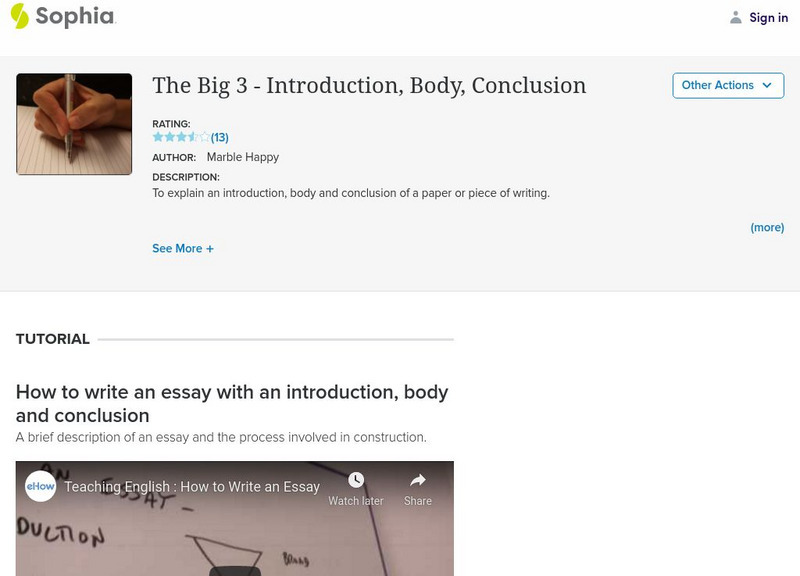 A video lesson explaining the purpose and structure of a conclusion to an essay. [4:39]