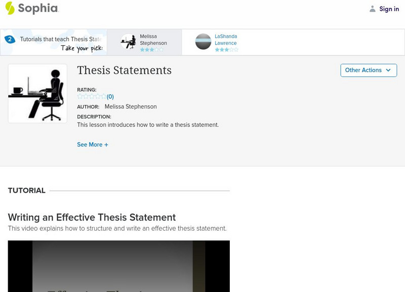 This lesson introduces how to write a thesis statement. This tutorial lesson shares a short screencast [04:45] with the lesson's content.