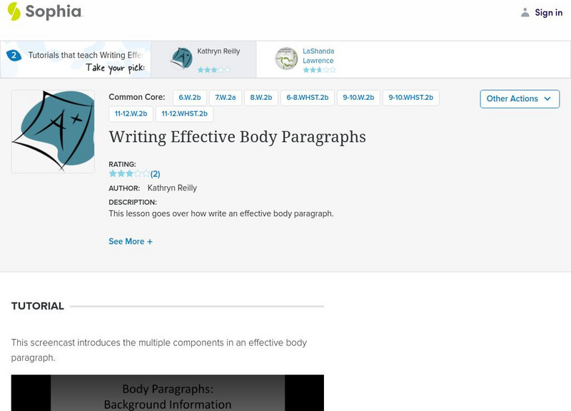 This lesson introduces body paragraphs. [3:41] CCSS.ELA-Literacy.WHST.6-8.2.b