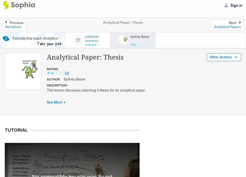 This lesson discusses selecting a thesis for an analytical paper. It is 1 of 2 in the series titled "Analytical Paper: Thesis."
