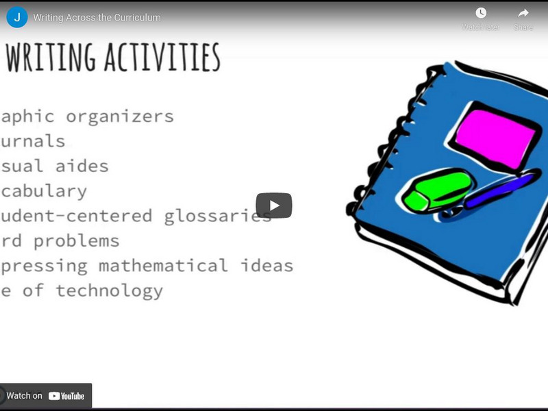 This video provides a rationale for writing across the curriculum. Multiple lists of writing ideas for different subject area are included. [5:41] CCSS.ELA-Literacy.WHST.6-8.10 Write routinely over extended time frames