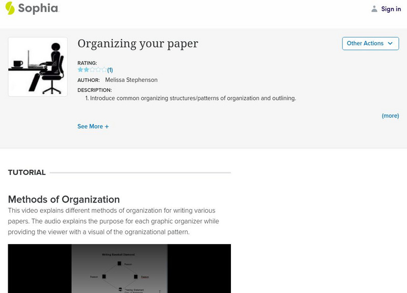 This tutorial focuses on organizing a paper. It provides three videos: the first video covers graphic organizers and how each is best used; the second one discusses the purpose, audience, and context of the writing and offers 5 methods...